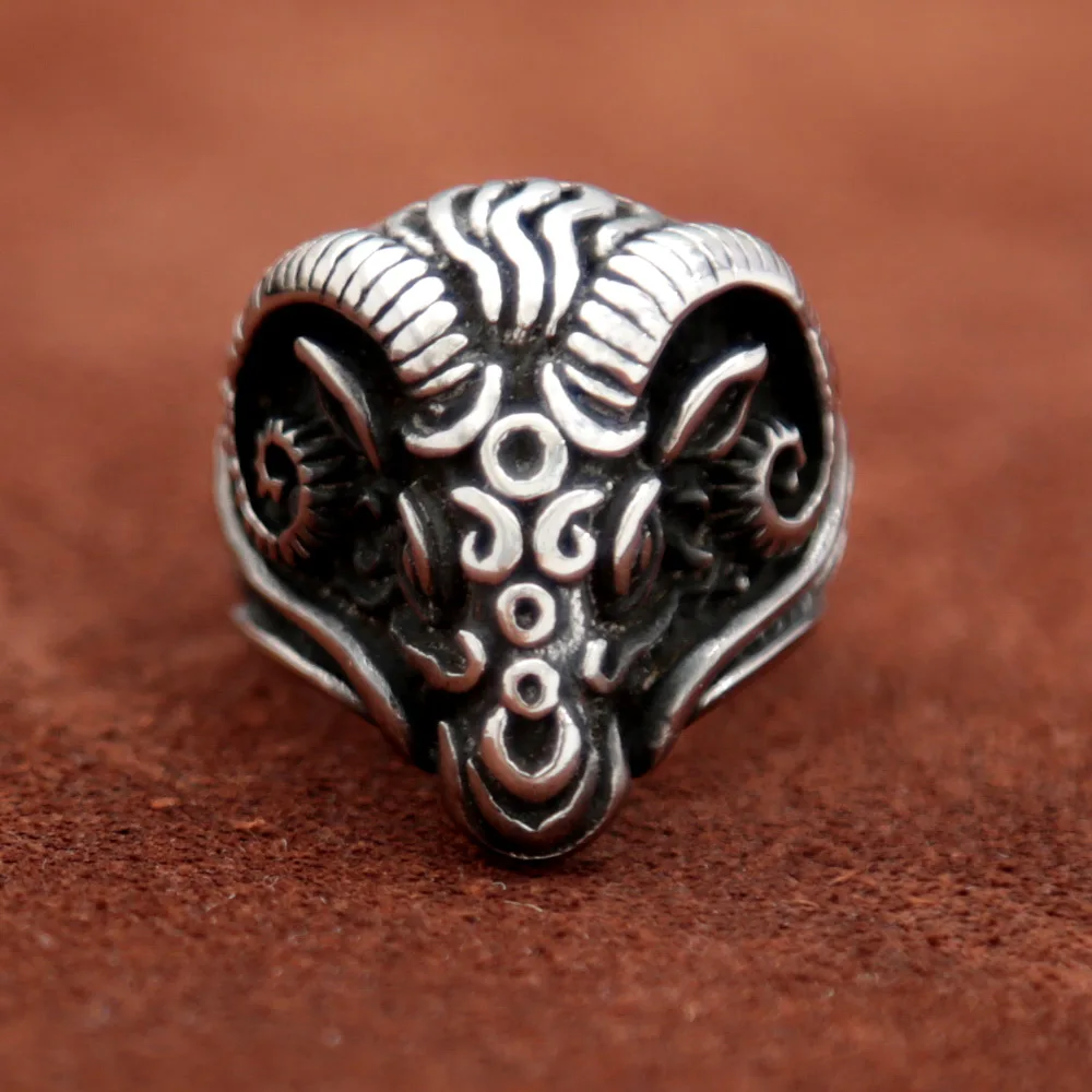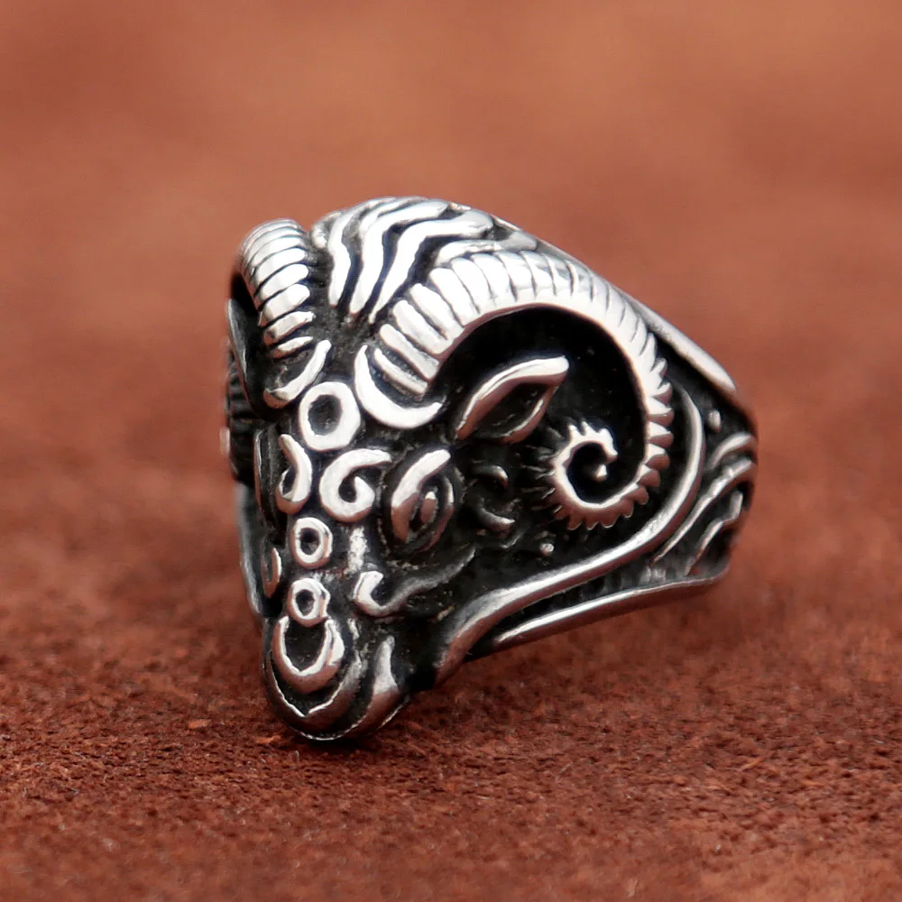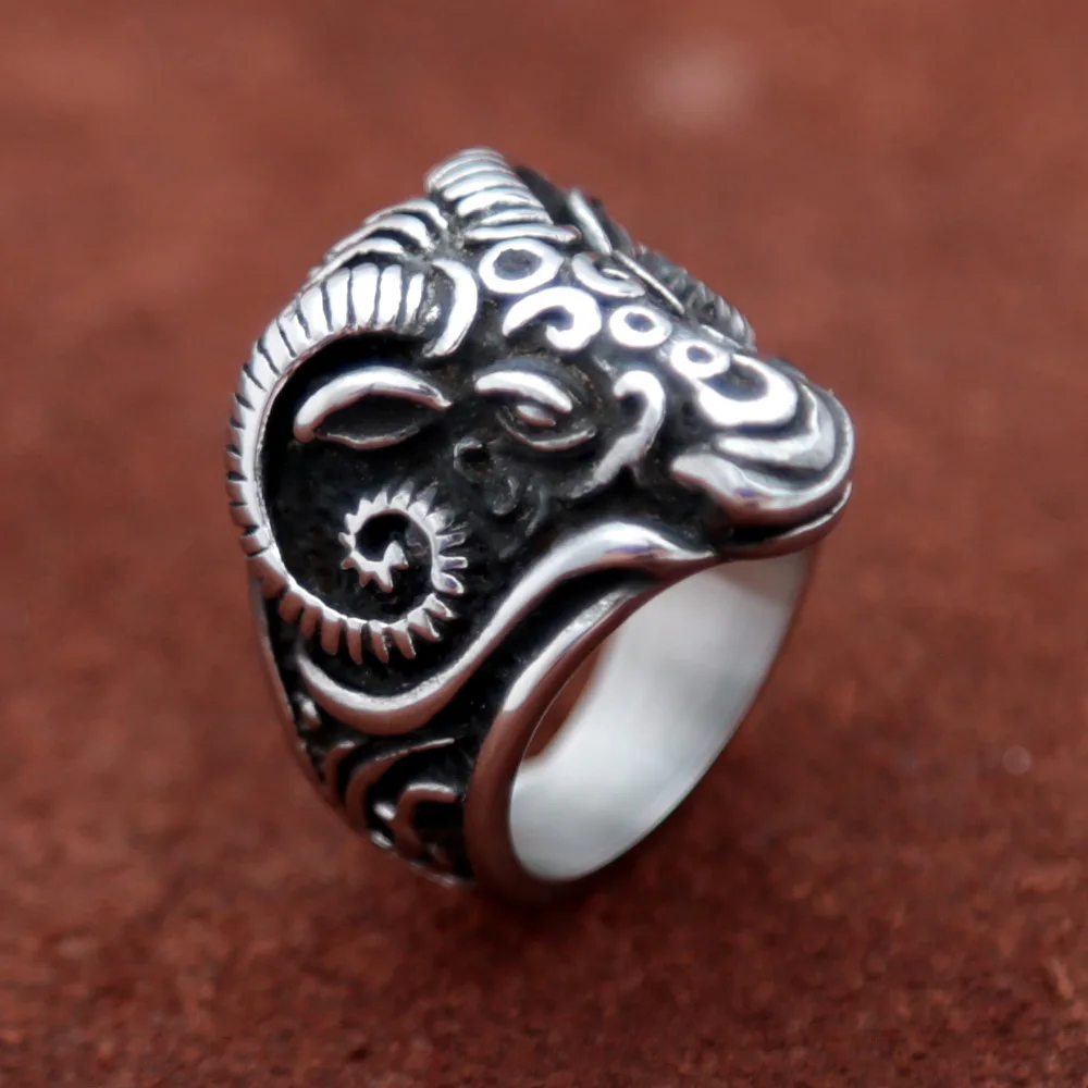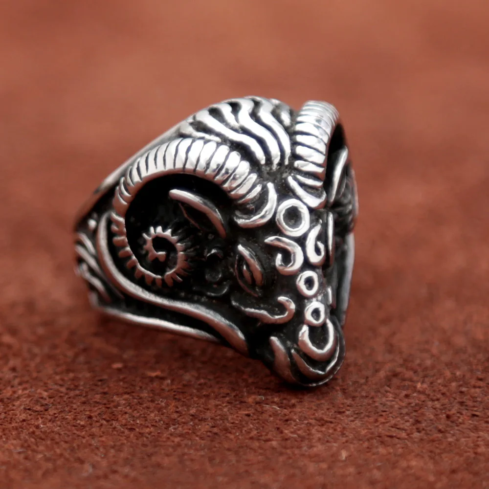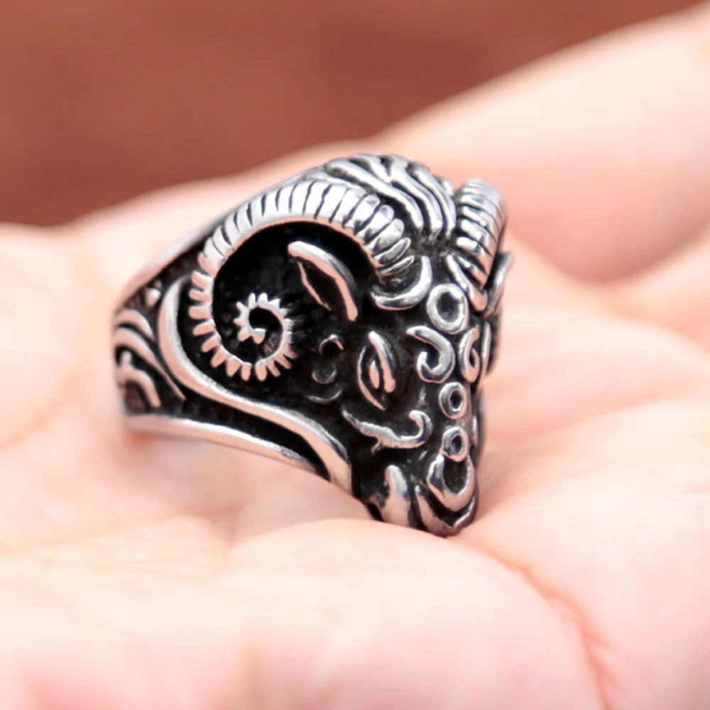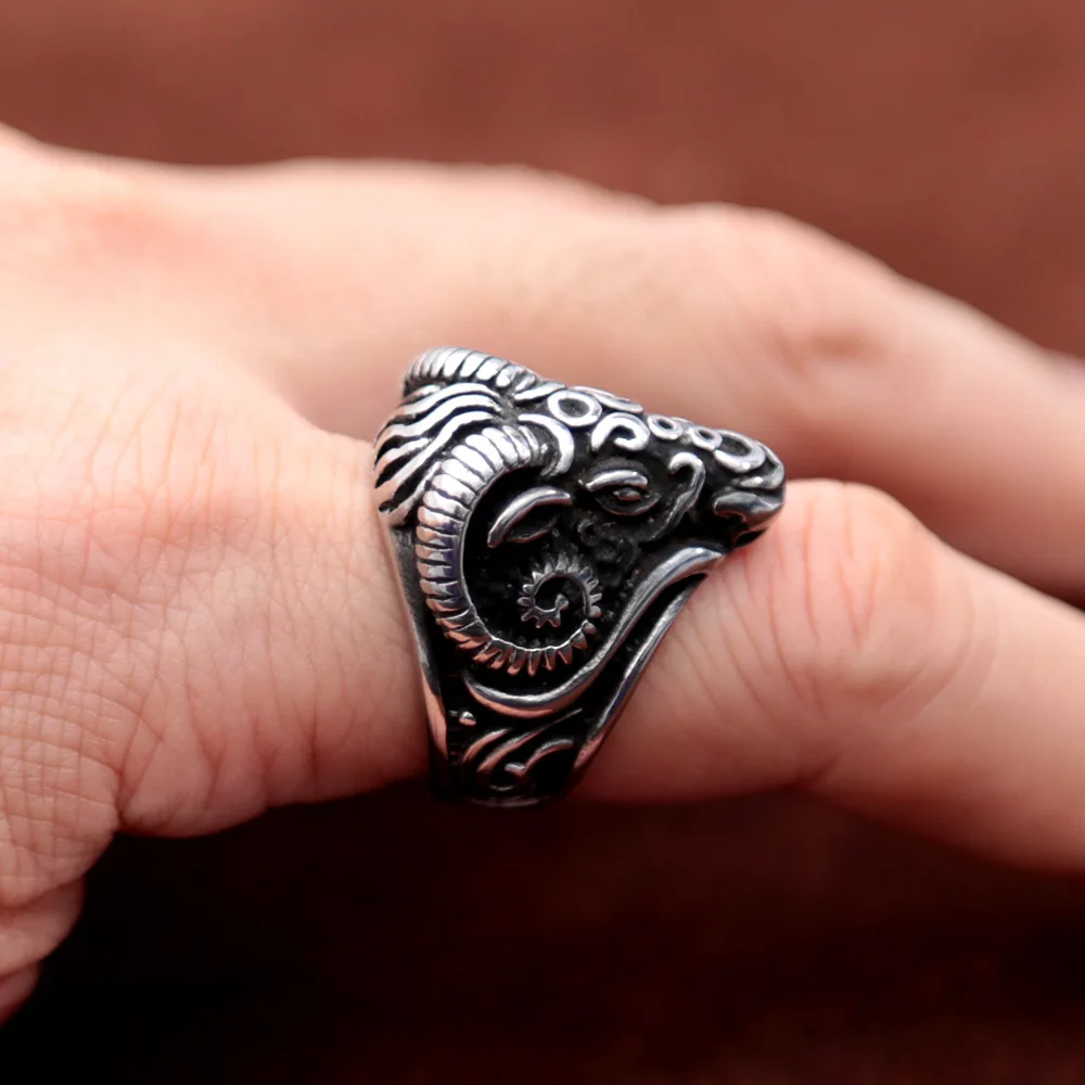 Name:Vintage Black Sheep Goat Head Ring Stainless Steel Animal Punk Biker Rings for Gothic Women Men Jewelry Gift Wholesale